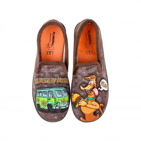 Zapatillas de estar por casa de la talla 35 a la 46, fabricadas con tela color marrón estampada de dibujos animados.