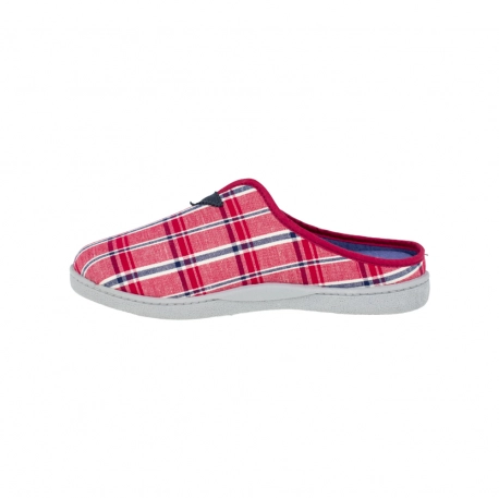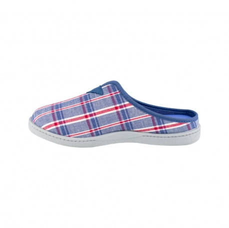 Zapatilla de estar por casa abierta en el talón, fabricada con telas frescas y transpirables.