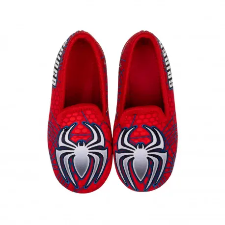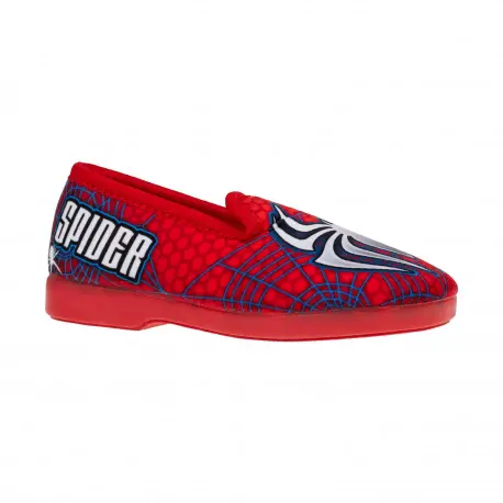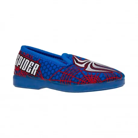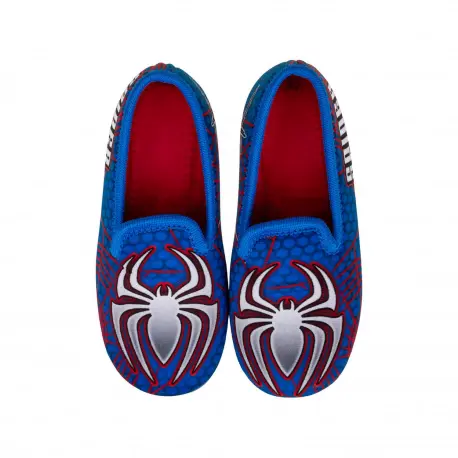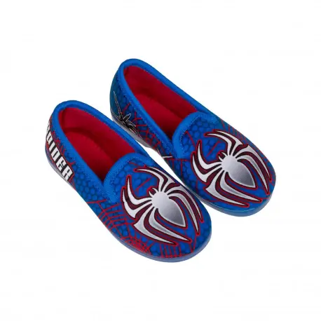 Zapatillas cerradas de estar por casa para niños, temporada de Invierno con tacón plano. Dibujo de Spider disponible en color azul y rojo. Cómodas y flexibles. Hechas en España.
