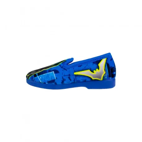 Zapatillas cerradas de estar por casa para niños, fabricadas con telas estampadas de superhéroes en color azul y azul marino. Forro interior de tela cálido, altamente recomendadas para el Invierno. Suela de caucho antideslizante.