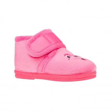 Zapatilla de bota para estar por casa en color azul y fucsia con dibujo.