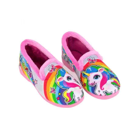Encantadoras zapatillas de estar por casa cerradas para niñas de la reconocida marca Alcalde. Presentamos el modelo 16011, con un adorable estampado de unicornio que hará muy felices a las más pequeñas.