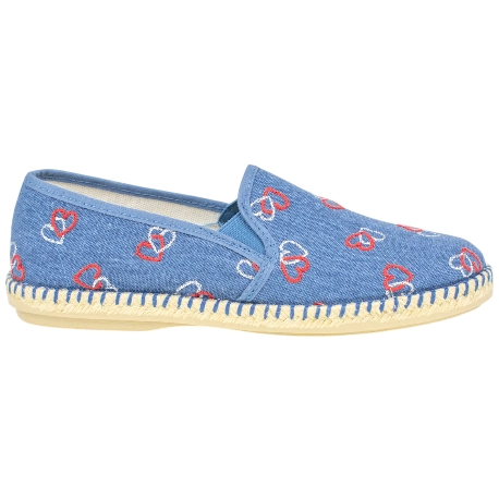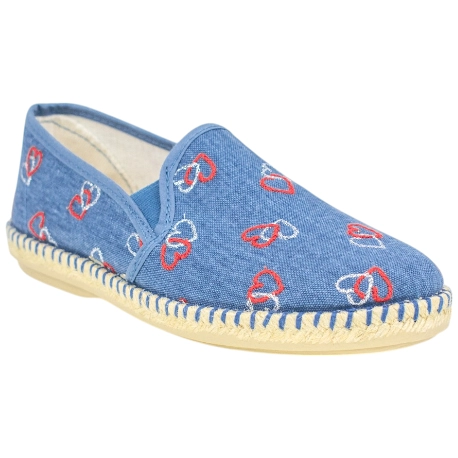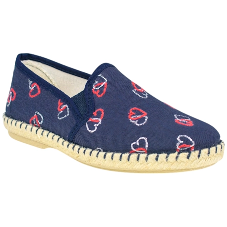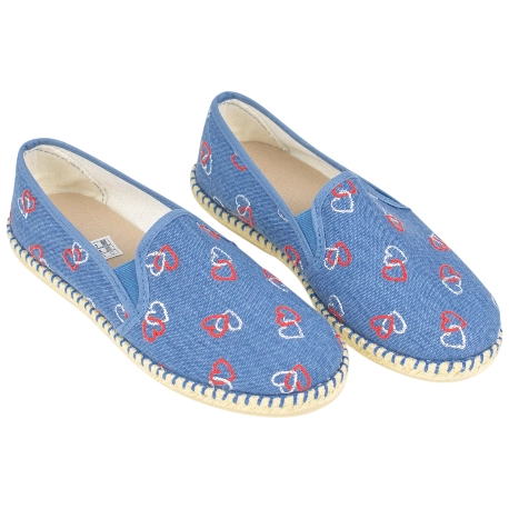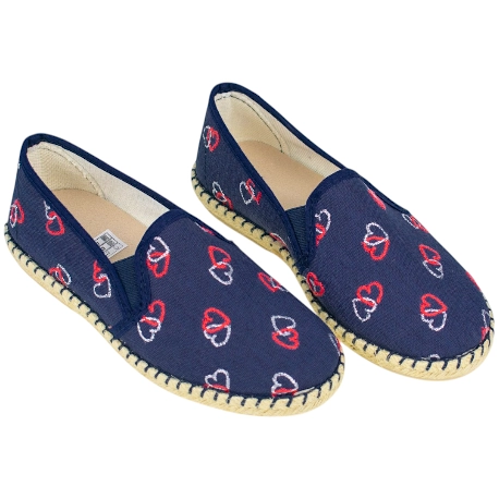 Zapatos de Verano estilo manoletina, fabricadas en lona con estampado de corazones. Cuentan con plantillas extraíbles, para un ajuste personal.