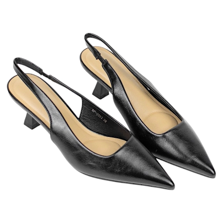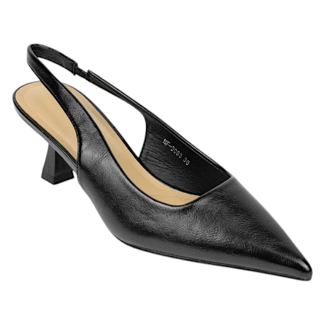 Zapatos de salón destalonados en clásico color negro, súper elegantes gracias a su punta fina, corte rectangular y tacón medio de 6cm.