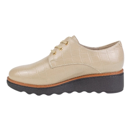 Descubre los elegantes zapatos con cuña de piel con estampado coco de la línea ReNature de CHK10, modelo 27828.