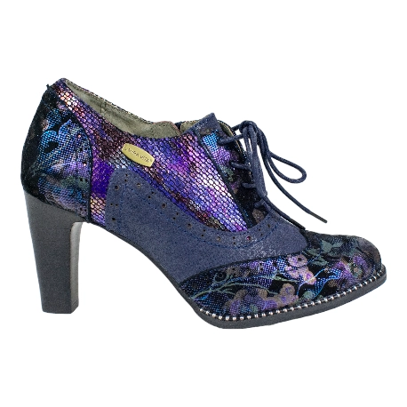 Zapatos Laura Vita elegantes de piel combinada con un exclusivo estampado floral e iridiscente, marca Laura Vita, modelo ALCBANEO.