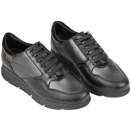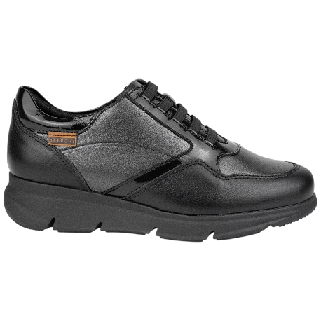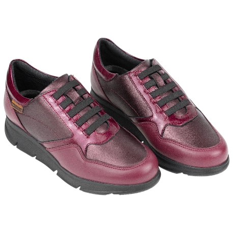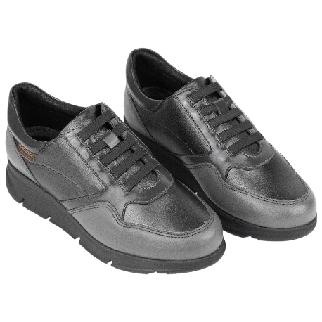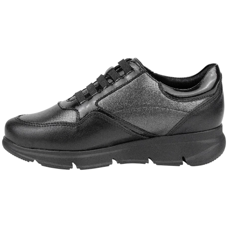 Zapatos casuales de mujer, fabricados en piel lisa y charol, cierre de gomas elásticas. Horma de ancho especial, plantillas extraíbles con amortiguación.