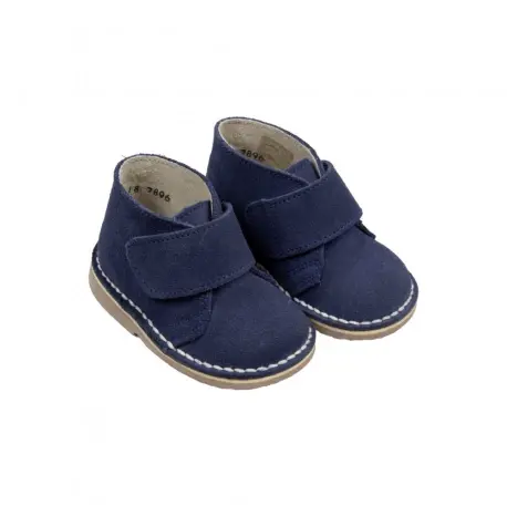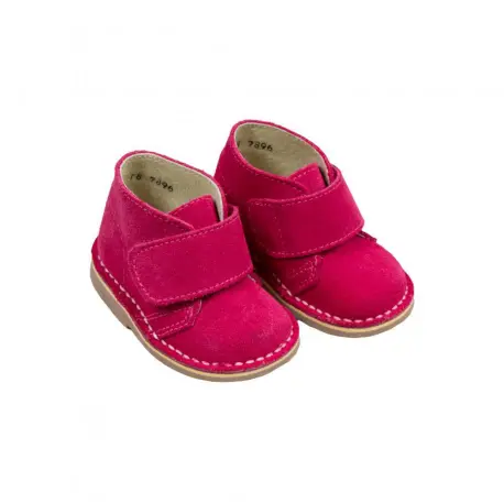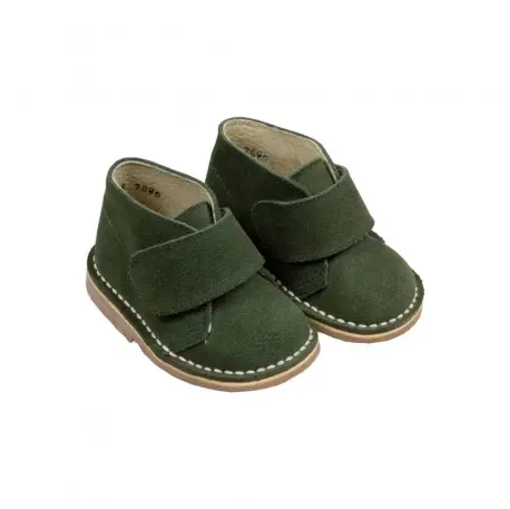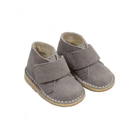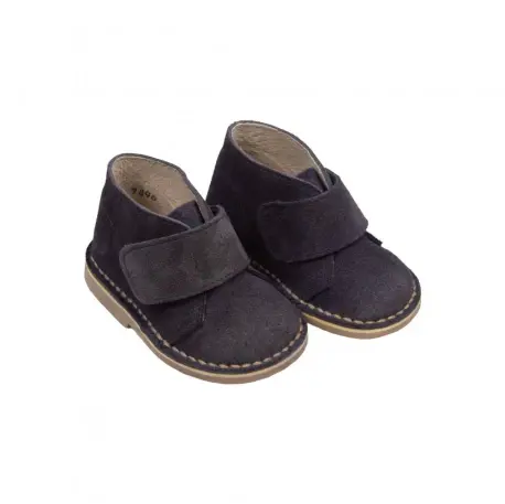 Botas de serraje(piel) natural de buena calidad, estilo safari con cierre de pegar. Cómodas y cálidas para los más pequeños de casa. Suela de goma resistente. Colores lisos en azul, fucsia, verde, gris y gris oscuro.
