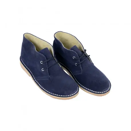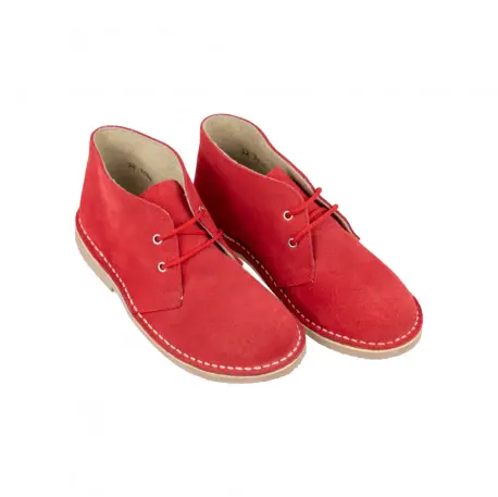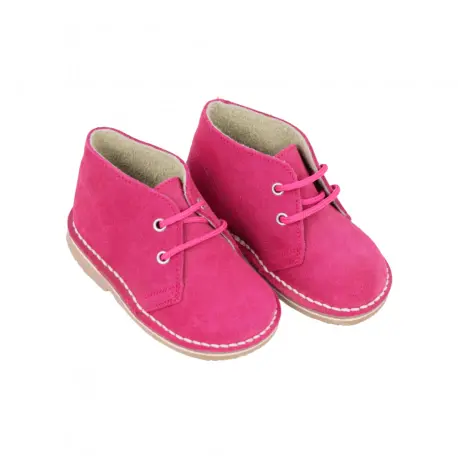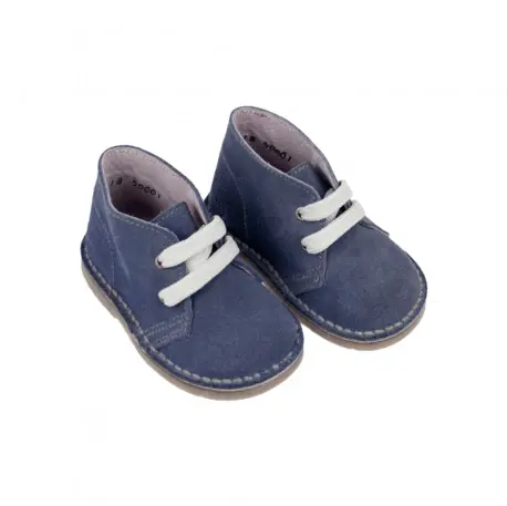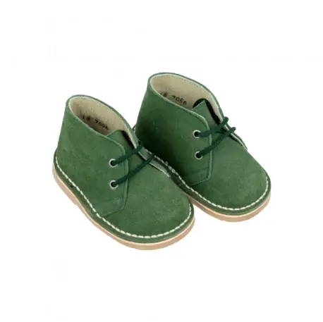 Botines tipo safari fabricados en serraje con cierre de cordones y suela plana de goma, disponibles en varios colores. Hechos en España con materiales de alta calidad. Estos botines son perfectos para cualquier aventura y combinan estilo y comodidad en un solo producto.