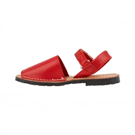 Sandalias de piel estilo menorquinas de la talla 20 a la 34, disponible en color blanco, rojo, azul marino y rosa.