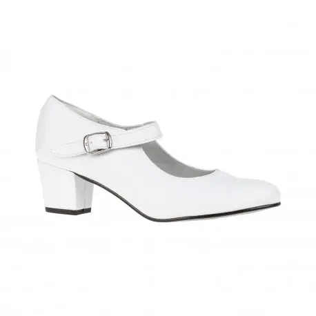 Zapato de baile fabricado en piel sintética. Sujeta bien el tobillo con una hebilla y la suela es lisa para realizar giros.