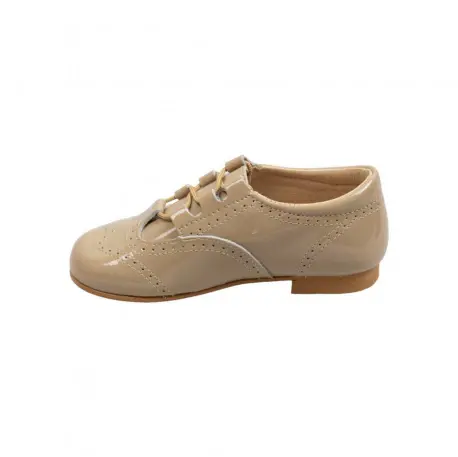 Zapatos estilo Inglés fabricados en charol, perfectos para darle al outfit de tu peque un toque de elegancia. Forro interior y plantilla de piel.