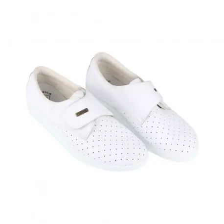 Zuecos cerrados sanitarios de trabajo fabricado en piel, con cierre de velcro. Muy cómoda gracias a su plantilla anatómica extraíble y su suela de goma de 3 centímetros en su parte más alta.