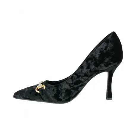 Estos deslumbrantes zapatos de salón destacan por su exquisito diseño de terciopelo, realzado con un adorno brillante que agrega un toque de glamour único.