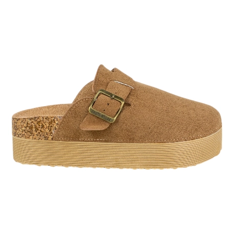 Luce a la moda con los zuecos de plataforma Jomix modelo MD1065. Confeccionados en tela de alta calidad, estos zuecos cuentan con una elegante hebilla dorada que añade un toque sofisticado.