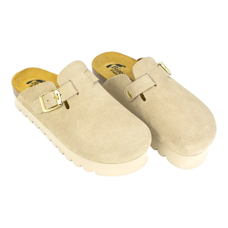 Su plataforma de 3.5 cm ofrece una ligera elevación que suma confort de tus zuecos sin comprometer la estabilidad. La plantilla anatómica asegura una pisada ergonómica, mientras que la hebilla ajustable permite un ajuste personalizado. Estos zuecos plataforma serraje son la combinación ideal de diseño moderno y funcionalidad.