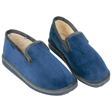 Hecha en España con telas suaves y cálidas., color azul con vivo gris.