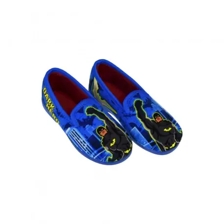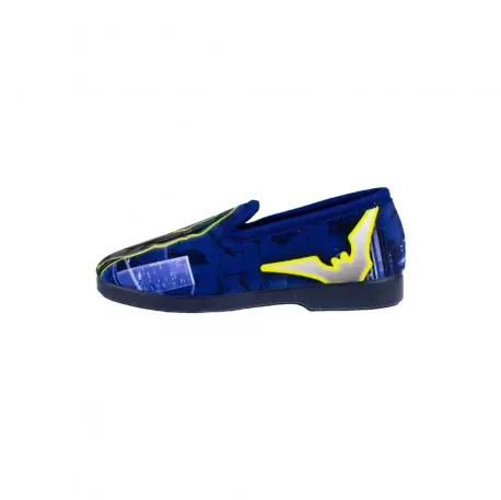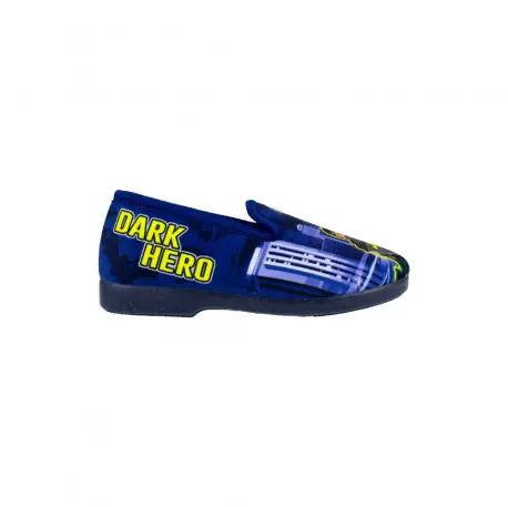 Zapatillas cerradas de estar por casa para niños, fabricadas con telas estampadas de superhéroes en color azul y azul marino. Forro interior de tela cálido, altamente recomendadas para el Invierno. Suela de caucho antideslizante.