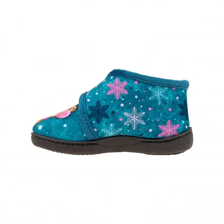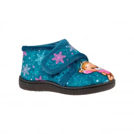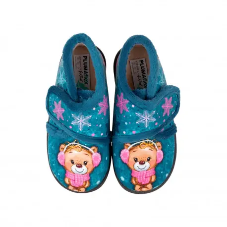 Zapatilla abotinada de niño de cierre con velcro. Diseño con estampado de oso sobre fondo color azul. Temporada Otoño Invierno 2022-2023. Forro interior muy suave, que mantendrá sus pies calentitos en los climas fríos.
