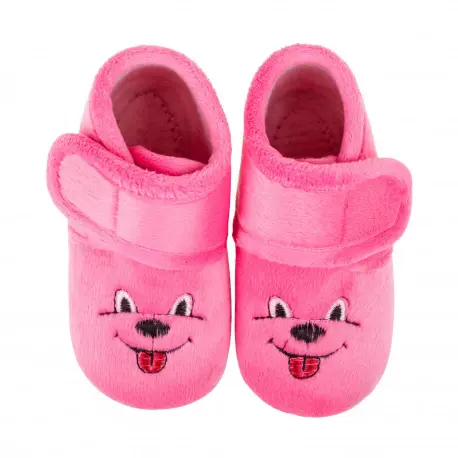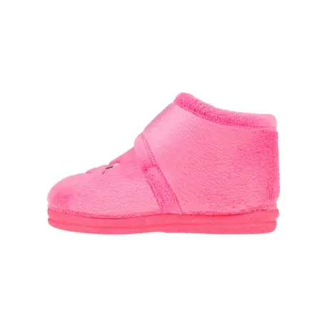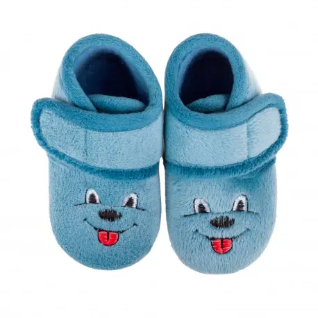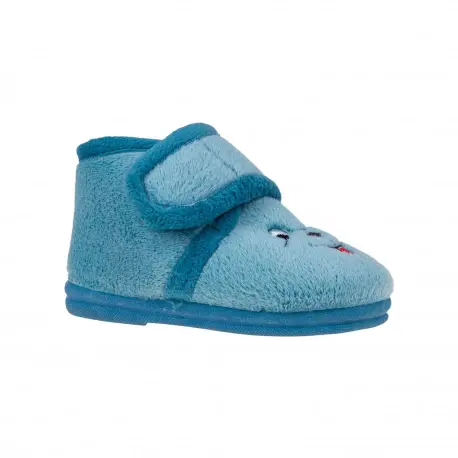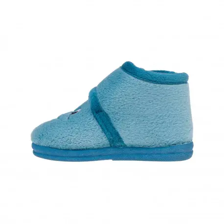 Zapatilla de bota para estar por casa en color azul y fucsia con dibujo.