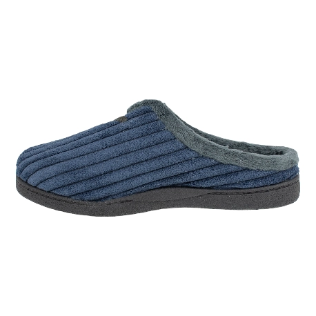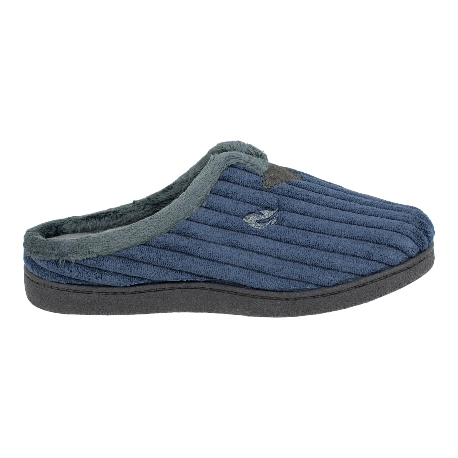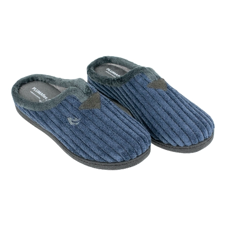 Zapatilla de estar por casa semidescalza en color azul marino. Hecha de pana suave y cálida perfecta para los días más fríos.