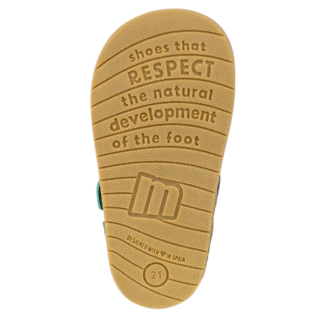 Fabricado con materiales veganos certificados por INESCOP. La puntera redonda y la suela plana zero drop, permiten el movimiento libre de sus pies.