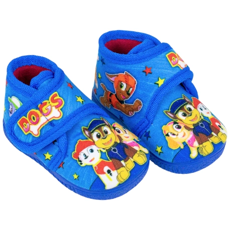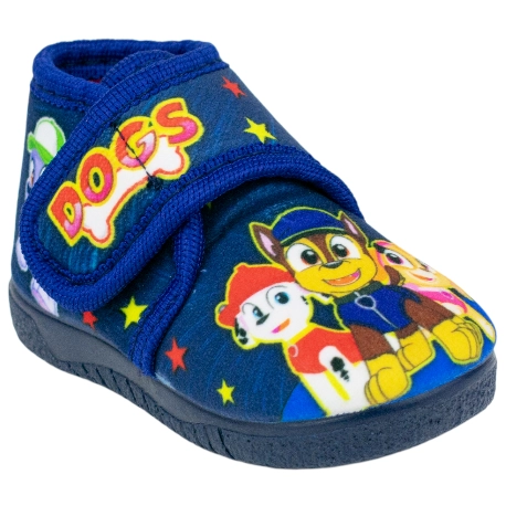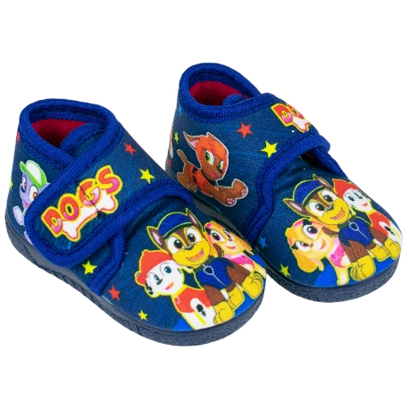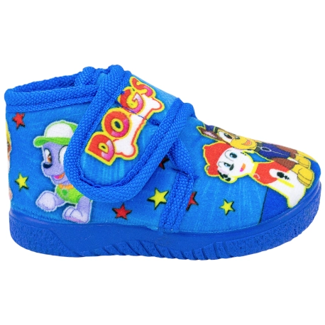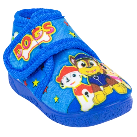 Zapatillas bota de estar por casa para niños, diseñadas y hechas en España. Estampado de perros dibujos animados.