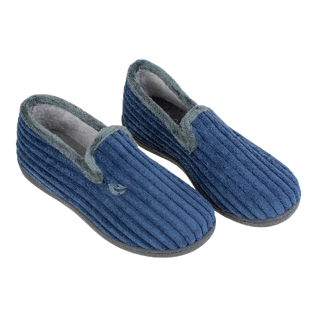Hechas en España, estas zapatillas cerradas de pana a rayas en azul marino ofrecen una suavidad incomparable.