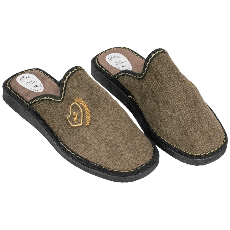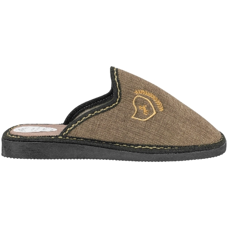 Zapatillas de estar por casa de Invierno para hombre, color marrón con logo lateral y ribete. Fabricadas con telas cálidas y suaves.