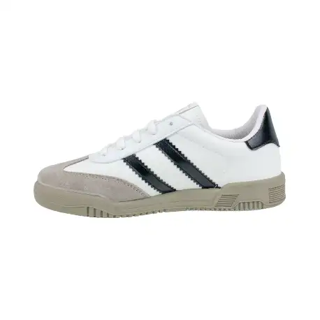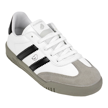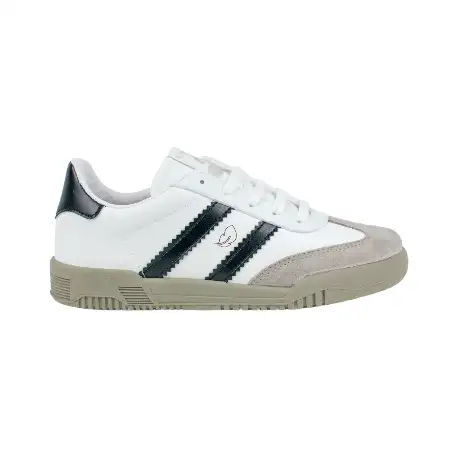 El blanco clásico se realza con rayas negras y una puntera gris, agregando un toque relajado a cualquier atuendo. Su plantilla extraíble brinda una comodidad excepcional para que puedas disfrutar de cada paso sin esfuerzo.