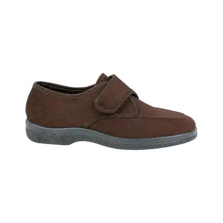 Zapatilla cerrada de casa o calle cómoda de ancho especial y cierre con velcro. Fabricada en ante con forro cálido para la temporada Otoño-Invierno. Suela antideslizante.