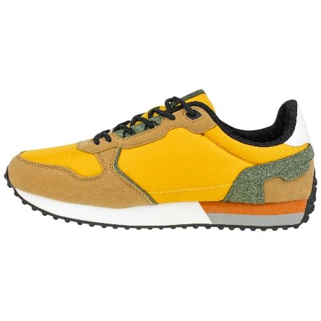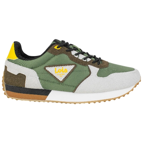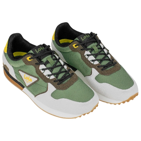 Cierre de cordones redondos ajustables. Forro interior de textil y collarín ligeramente acolchado. Plantillas extraíbles con sistema Shock Absortion, amortiguación y comodidad.