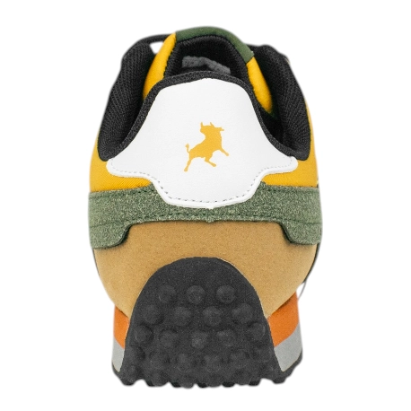 Suela de goma con Eva en 3 colores, detalles de la marca en el lateral, lengüeta y parte trasera.