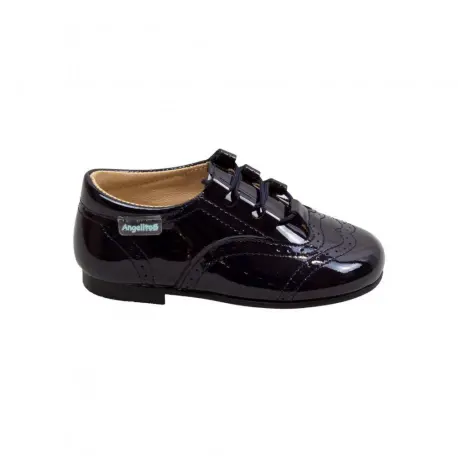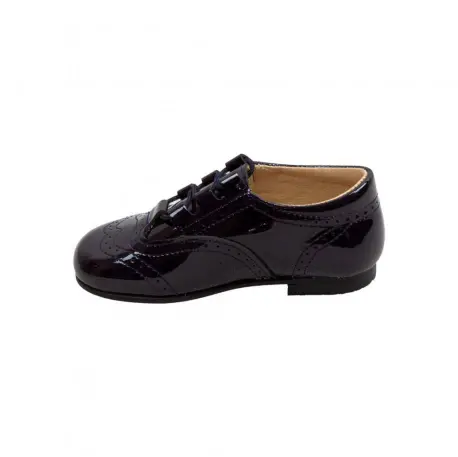 Zapatos estilo Inglés fabricados en charol, perfectos para darle al outfit de tu peque un toque de elegancia. Forro interior y plantilla de piel.