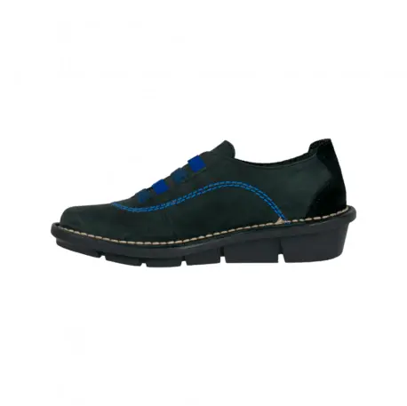 Cuentan con un cierre de gomas elásticas en tonos azules, lo que no solo les da un toque de color y estilo, sino que también hace que sean muy fáciles de poner y quitar. El color negro de estos zapatos los hace muy versátiles y fáciles de combinar con cualquier estilo de ropa. Además, están fabricados en piel nobuk, un material suave y elegante.