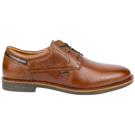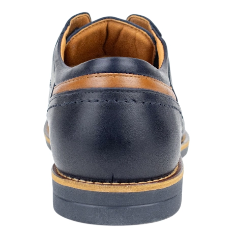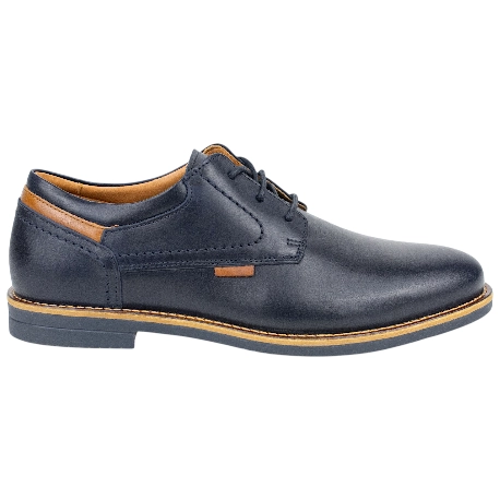 El diseño Derby se caracteriza por su versatilidad. A diferencia de otros zapatos más rígidos, sus solapas de ojales cosidas por fuera del empeine ofrecen una mayor apertura y flexibilidad, lo que se traduce en un calce mucho más cómodo, especialmente para empeines altos. El interior, con forro de piel y tela y una plantilla de piel, garantiza una transpirabilidad y una comodidad excepcionales durante toda la jornada. La suela de goma, cosida y pegada, es una promesa de durabilidad y seguridad en cada paso.