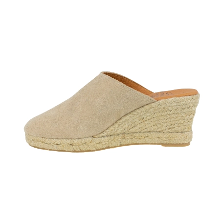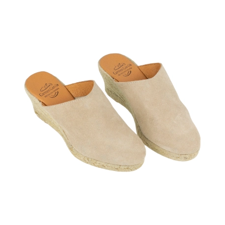Disponible en diseño color beige en piel seraje. Fabricados en España, cuentan con una cuña de 6.5cm que realza tu figura y una suela de goma que ofrece una pisada firme y segura.