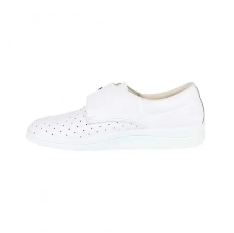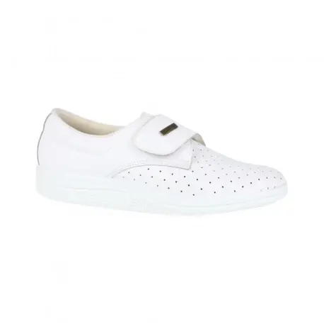 Zuecos cerrados sanitarios de trabajo fabricado en piel, con cierre de velcro. Muy cómoda gracias a su plantilla anatómica extraíble y su suela de goma de 3 centímetros en su parte más alta.