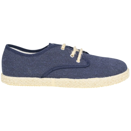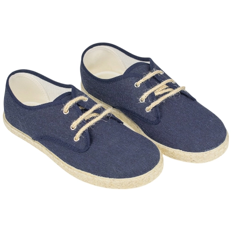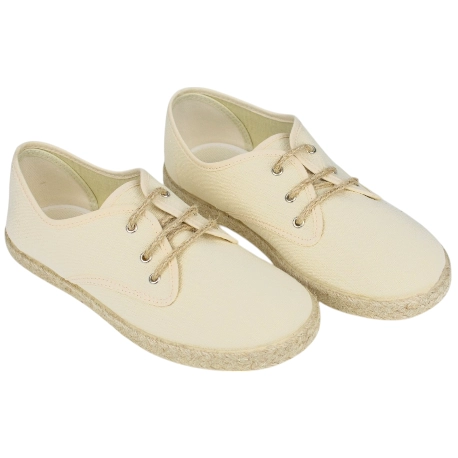 Alpargatas planas para niños, fabricadas en tela fresca y transpirable. Cierre de cordones de cuerda y suela de goma y esparto.
