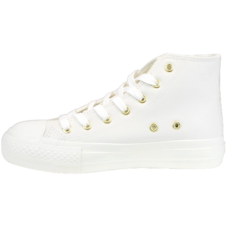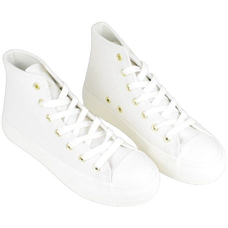 Zapatillas deportivas monocolor en tendencia. Fabricadas con materiales de buena calidad en color blanco, cuenta con plataforma de 3cm., cierre de cordones con ojales dorados y puntera de goma.