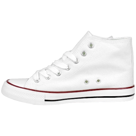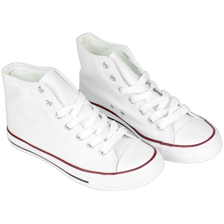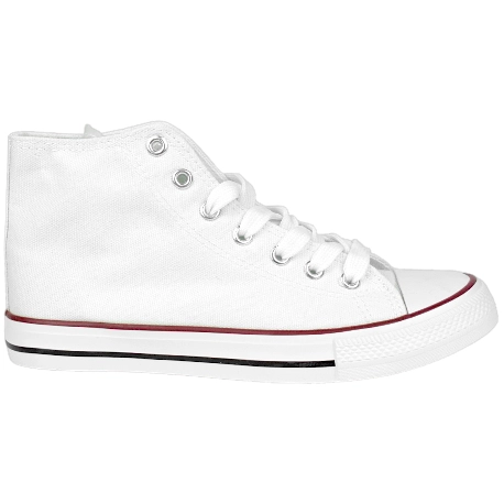 Zapatillas deportivas tipo lona alta, fabricadas en tela blanca con puntera, suela de goma y plantillas de tela. Diseño juvenil perfecto para entretiempo, cierre de cordones.