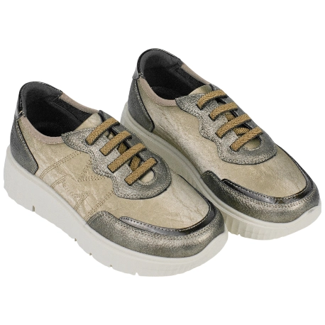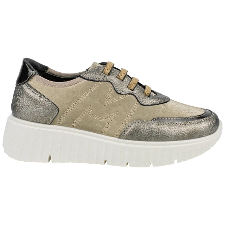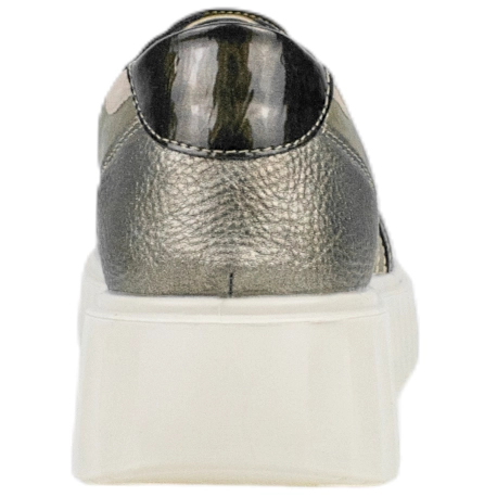 Zapatillas con plataforma de goma de 2.5-4.5cm., diseño en tonos tierra con toques de bronce.