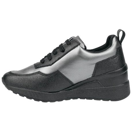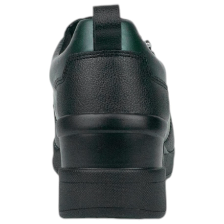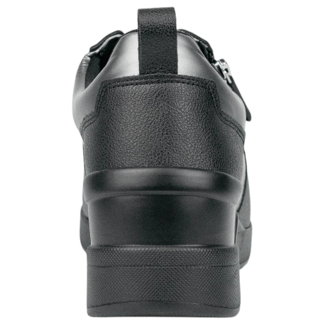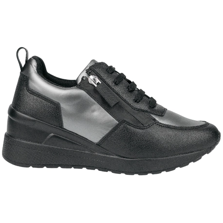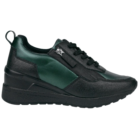 Zapatillas con plantilla de piel, y cuña de 6cm. Cierre de cordones ajustables y cremallera lateral.