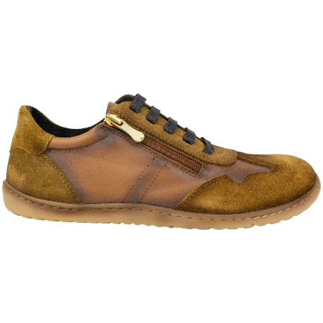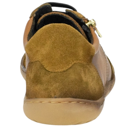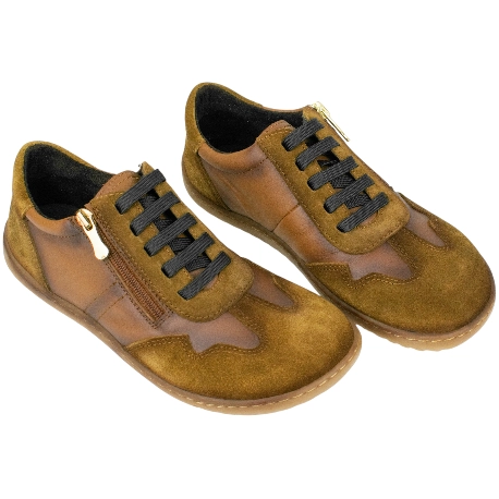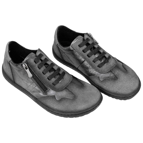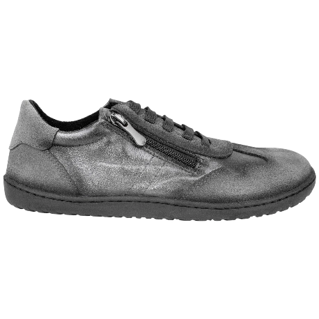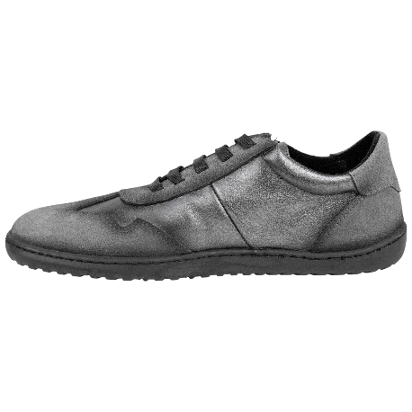 Zapato de pie, de acabado metalizado, hecho artesanalmente en España. Con horma barefoot, que favorece el movimiento y respeta la forma natural del pie.